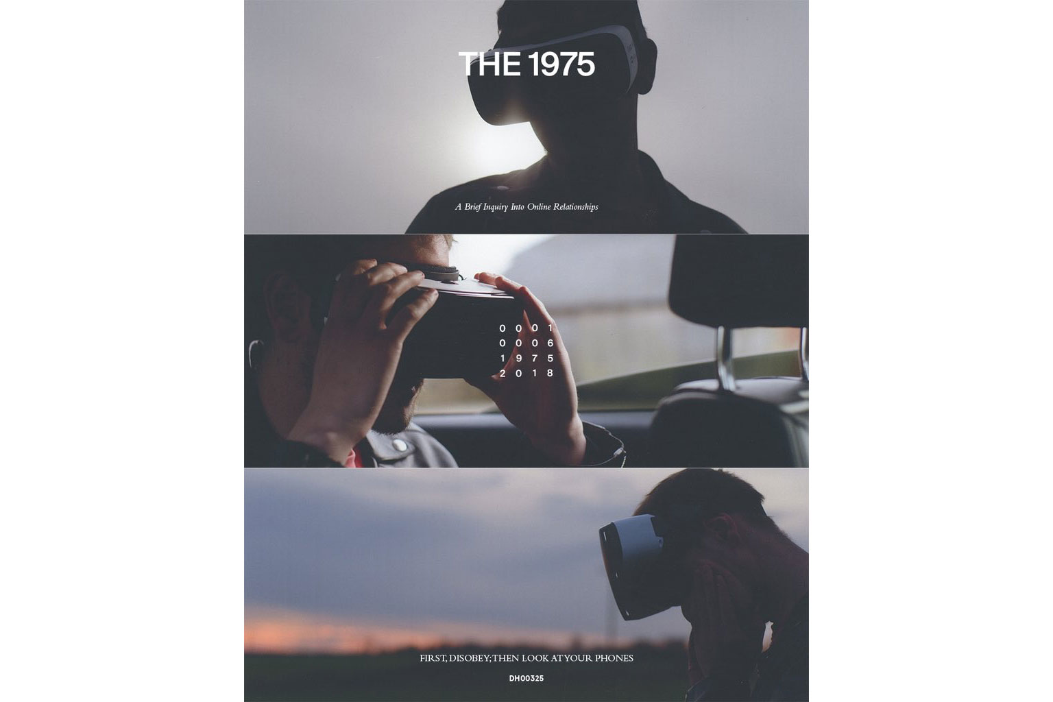 Featuring the DH00325 catalogue number and their ‘A Brief Inquiry Into Online Relationships’ title, it features three images of VR headsets.