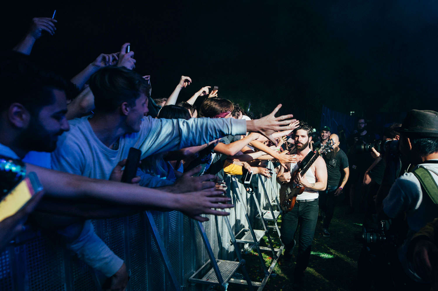 Organically focused on the details which blossom into spellbinding moments, the breadth of who they are is mesmerising. When ‘Spanish Sahara’ drops in the middle of the set, as the night covers Victoria Park, it becomes a mass congregation. A guiding example of how to set the hairs on the back of your neck up in sheer awe, Yannis seizes the moment as he prowls around the stage – baying for more and flinging himself into every note and spiral. In a set that flexes and pushes its chest out, ‘Inhaler’ and ‘What Went Down’ set fire to Victoria Park with primal intensity, a fitting raise of the glass to the role they now play in British music.